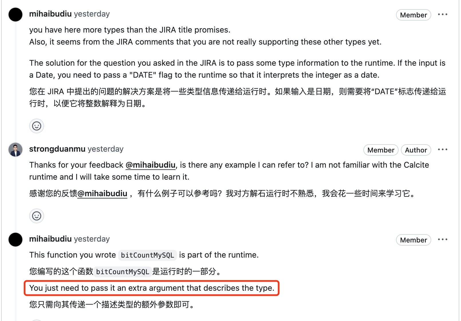 从 Calcite BIT_COUNT 实现逻辑可以了解到,目前,Calcite 还没有适配非数值字符、Boolean 以及日期/时间类型,下面我们来探究下如何增强 BIT_COUNT 实现逻辑,来支持 MySQL 的这些特殊类型。