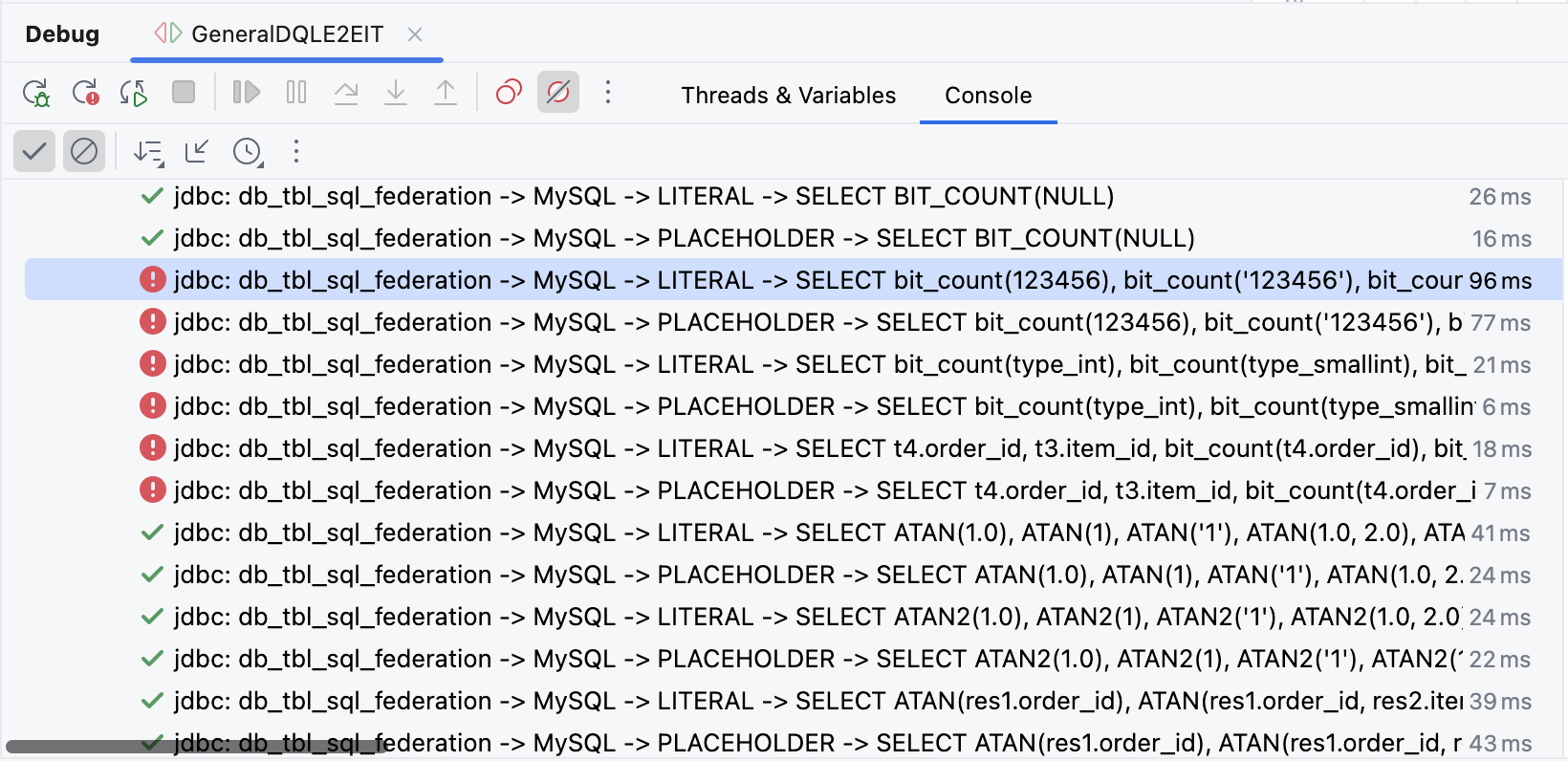 java.lang.NumberFormatException: Character a is neither a decimal digit number, decimal point, nor "e" notation exponential mark. at java.base/java.math.BigDecimal.<init>(BigDecimal.java:522) at java.base/java.math.BigDecimal.<init>(BigDecimal.java:405) at java.base/java.math.BigDecimal.<init>(BigDecimal.java:838) at org.apache.calcite.linq4j.tree.Primitive.charToDecimalCast(Primitive.java:433) at Baz$1$1.current(Unknown Source) at org.apache.shardingsphere.sqlfederation.resultset.SQLFederationResultSet.next(SQLFederationResultSet.java:105) at com.zaxxer.hikari.pool.HikariProxyResultSet.next(HikariProxyResultSet.java) at org.apache.shardingsphere.test.e2e.engine.type.dql.BaseDQLE2EIT.assertRows(BaseDQLE2EIT.java:157) at org.apache.shardingsphere.test.e2e.engine.type.dql.BaseDQLE2EIT.assertResultSet(BaseDQLE2EIT.java:107) at org.apache.shardingsphere.test.e2e.engine.type.dql.GeneralDQLE2EIT.assertExecuteQueryForStatement(GeneralDQLE2EIT.java:99) at org.apache.shardingsphere.test.e2e.engine.type.dql.GeneralDQLE2EIT.assertExecuteQueryWithExpectedDataSource(GeneralDQLE2EIT.java:85) at org.apache.shardingsphere.test.e2e.engine.type.dql.GeneralDQLE2EIT.assertExecuteQuery(GeneralDQLE2EIT.java:62) at org.apache.shardingsphere.test.e2e.engine.type.dql.GeneralDQLE2EIT.assertExecuteQuery(GeneralDQLE2EIT.java:55)
