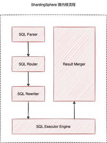 执行引擎原理 在解读执行引擎性能优化之前,让我们先来回顾下 Apache ShardingSphere 微内核及内核流程中执行引擎的原理。如下图所示,Apache ShardingSphere 微内核包含了 SQL 解析、SQL 路由、SQL 改写、SQL 执行和结果归并等核心流程。