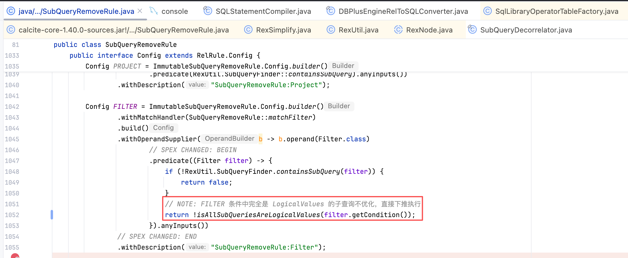 1 | Config FILTER = ImmutableSubQueryRemoveRule.Config.builder() |